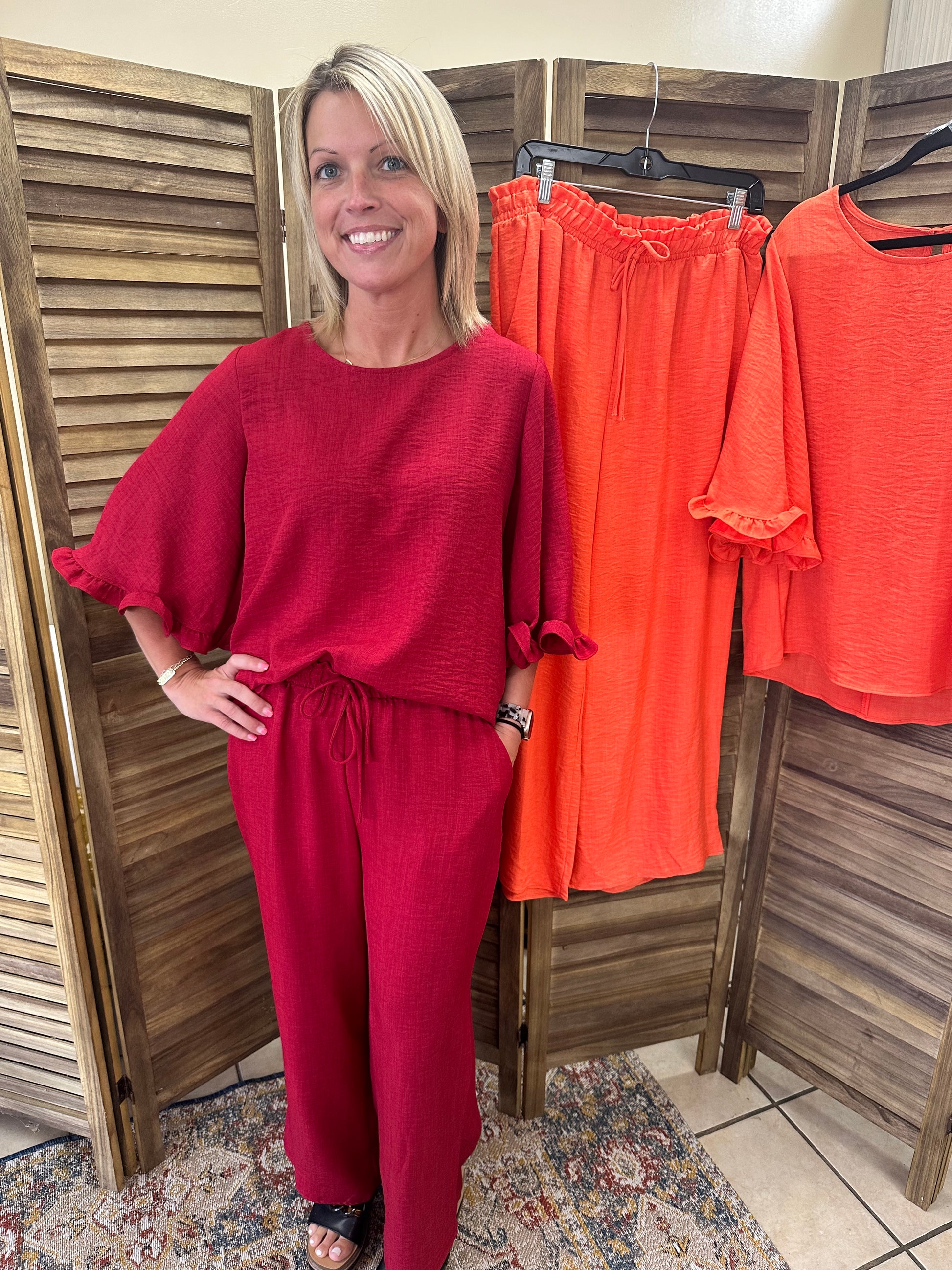 Indulge in luxurious comfort with our CiCi linen top! The linen feel will keep you cool and comfortable, while the flowy ruffled sleeves add a touch of elegance. Perfect for any occasion, this top will elevate your wardrobe.