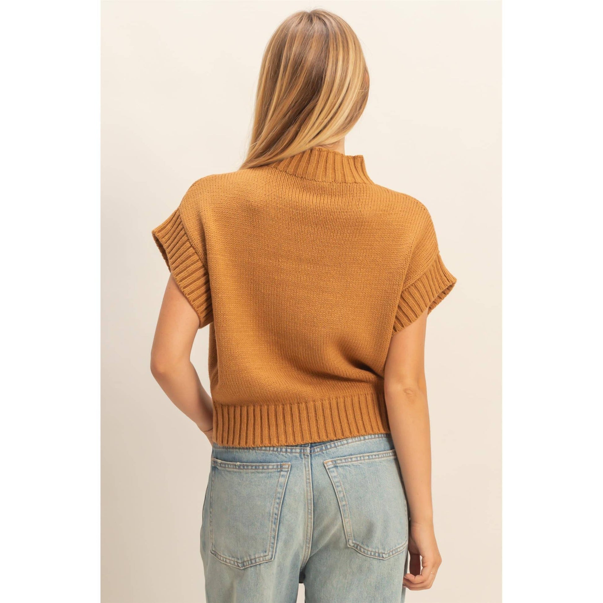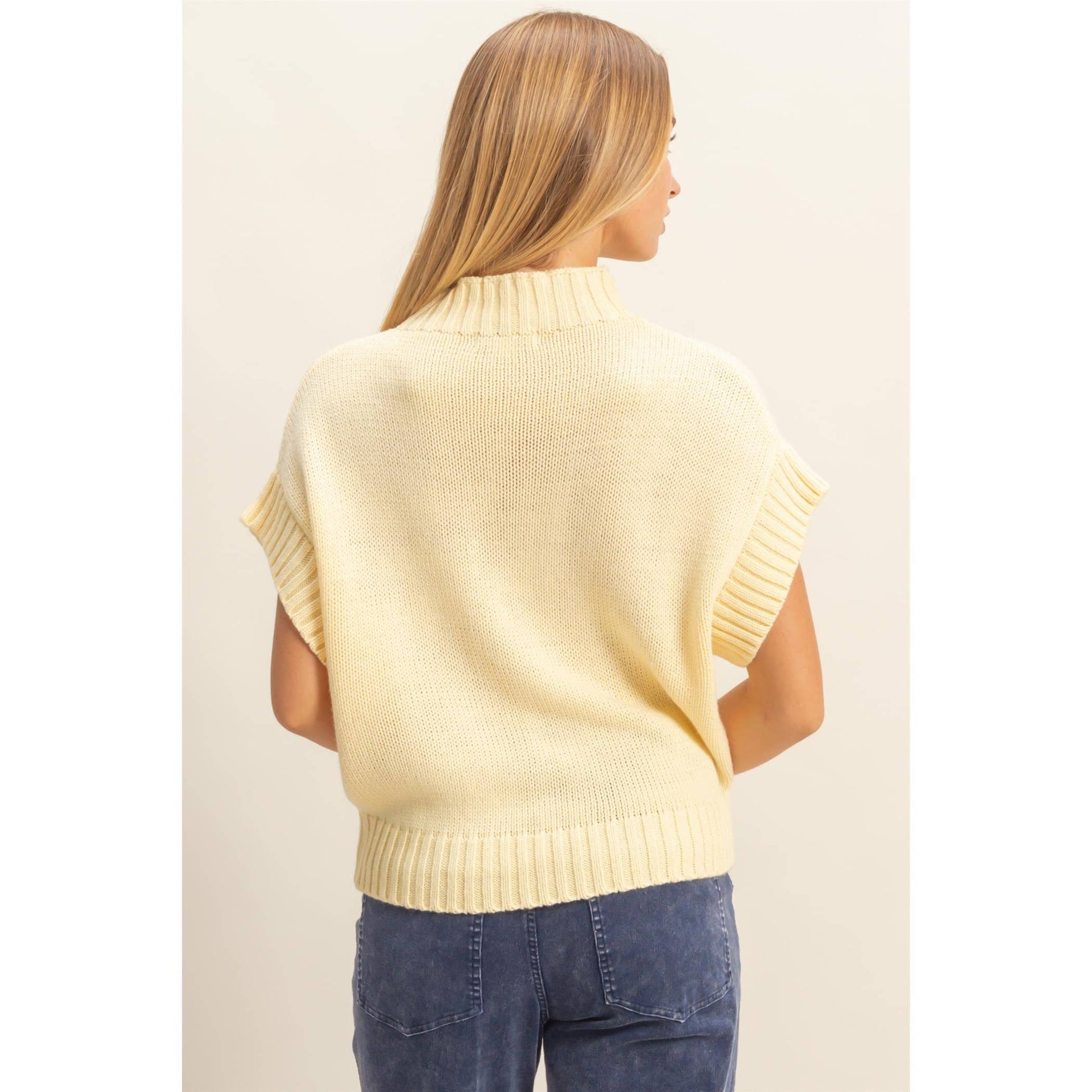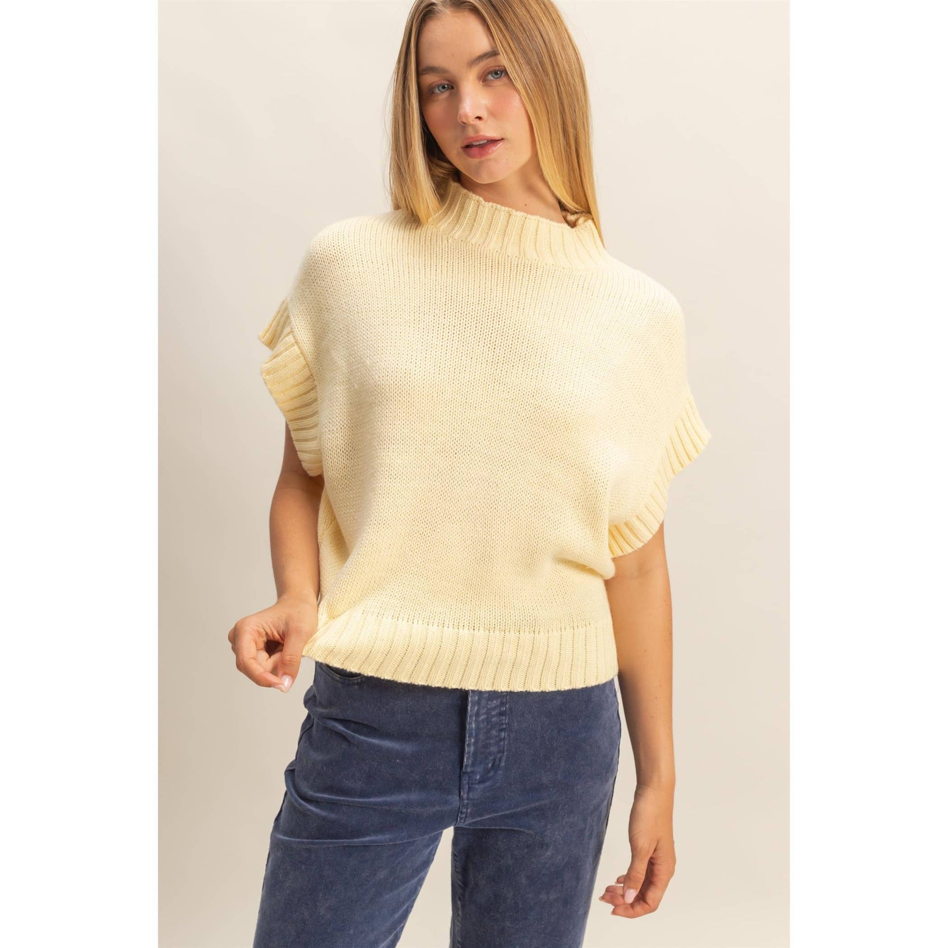Elevate your wardrobe with this short sleeve mock neck sweater, perfect for versatile styling. Its ribbed collar and hem add a structured silhouette, making it ideal for both casual and smart outfits. Layer it under a blazer for a professional look or pair it with jeans for a relaxed weekend vibe. This sleeve design ensures comfort and freedom of movement, while the subtle ribbing enhances the fit without compromising style.