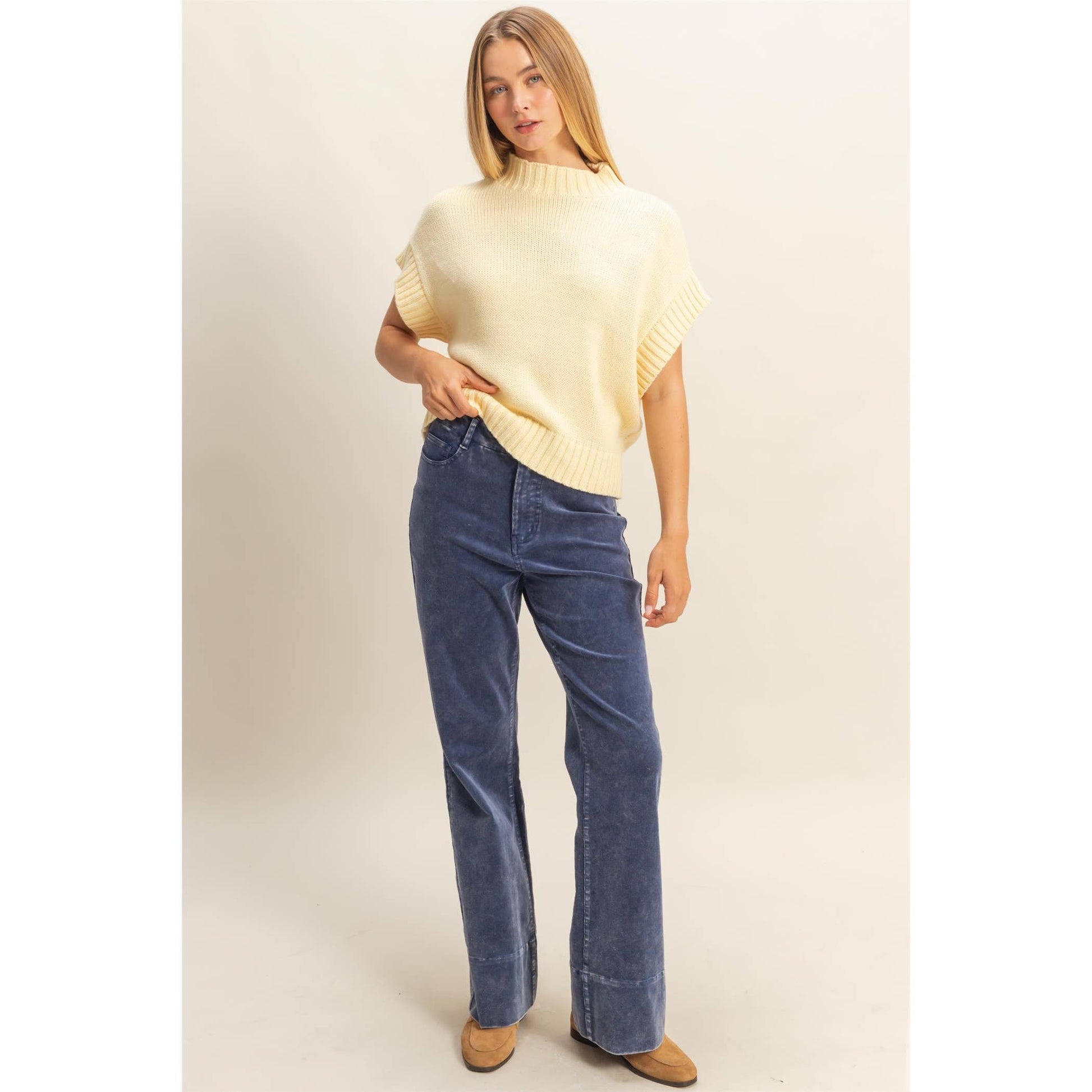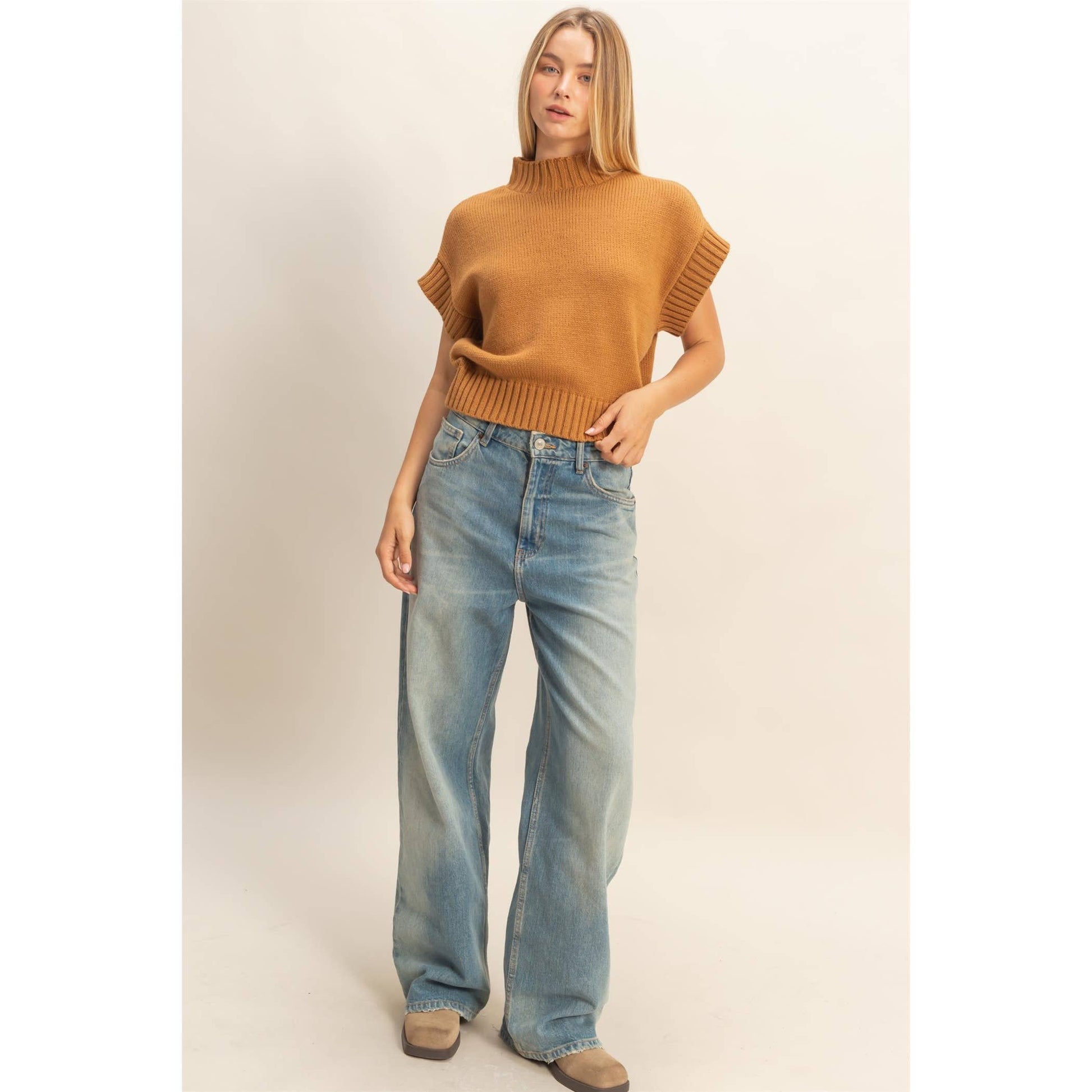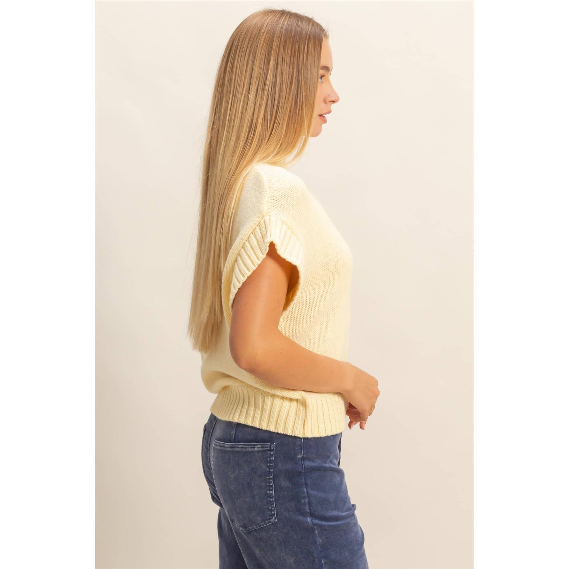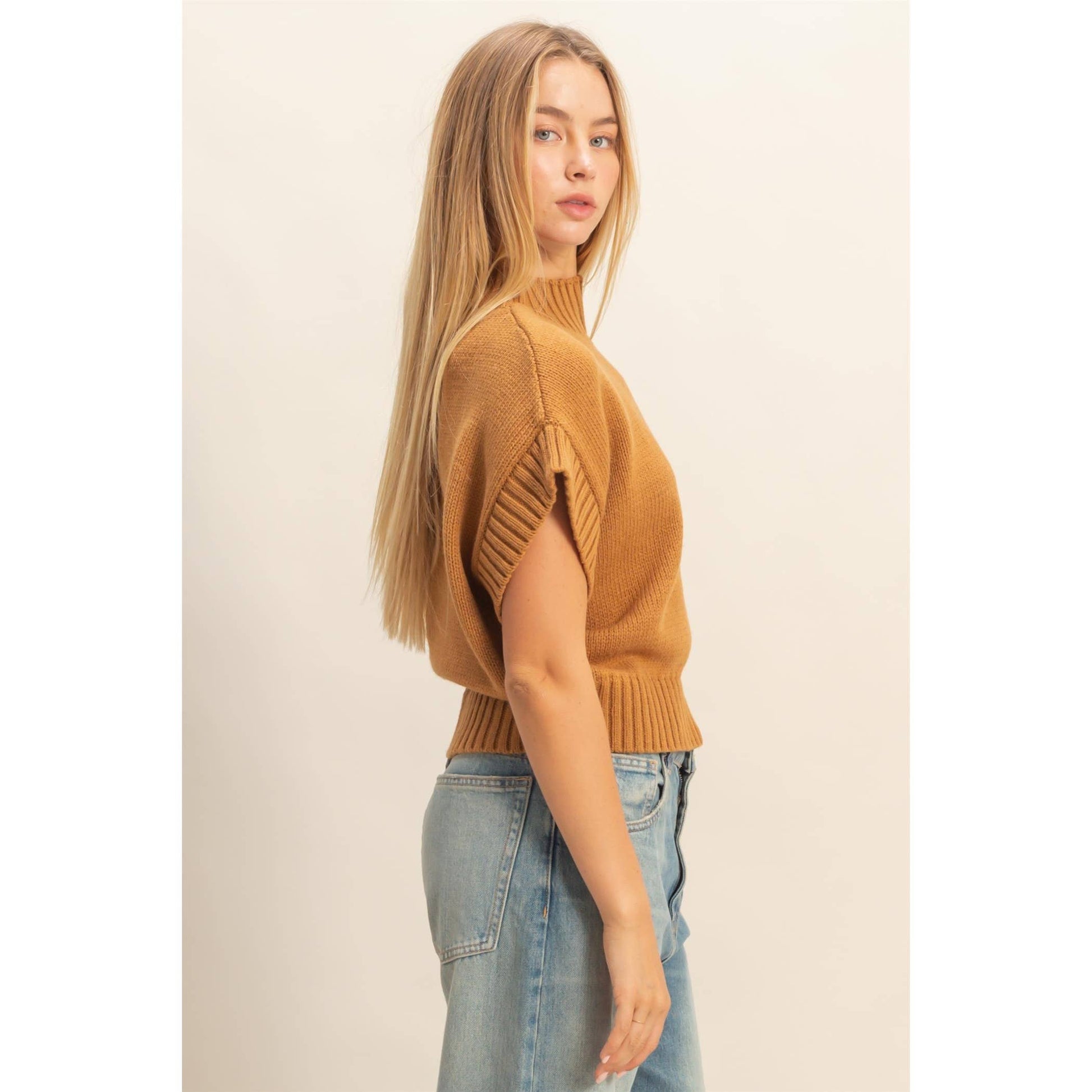 Elevate your wardrobe with this short sleeve mock neck sweater, perfect for versatile styling. Its ribbed collar and hem add a structured silhouette, making it ideal for both casual and smart outfits. Layer it under a blazer for a professional look or pair it with jeans for a relaxed weekend vibe. This sleeve design ensures comfort and freedom of movement, while the subtle ribbing enhances the fit without compromising style.