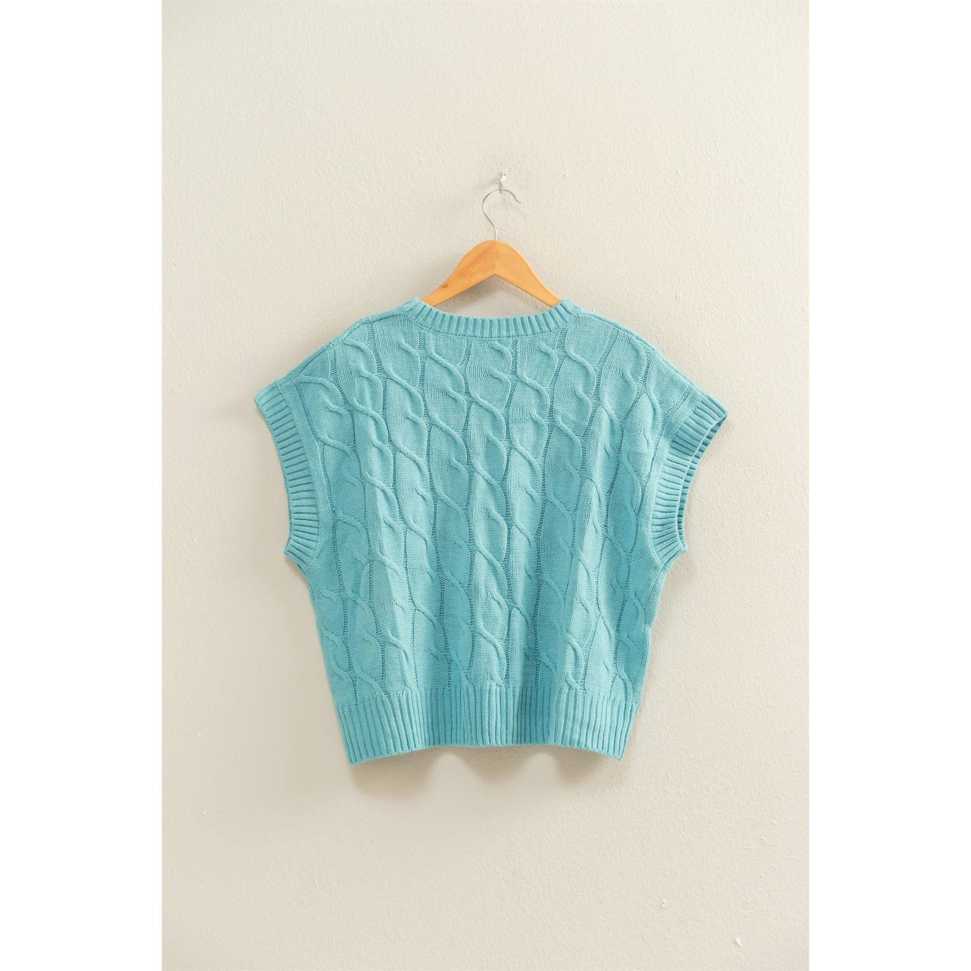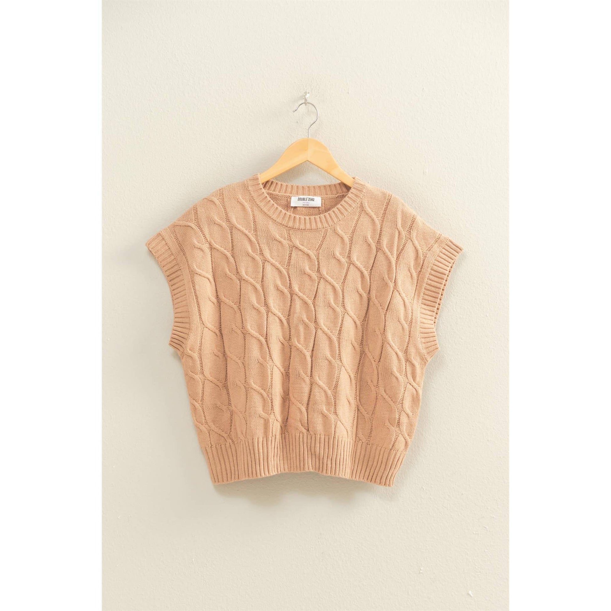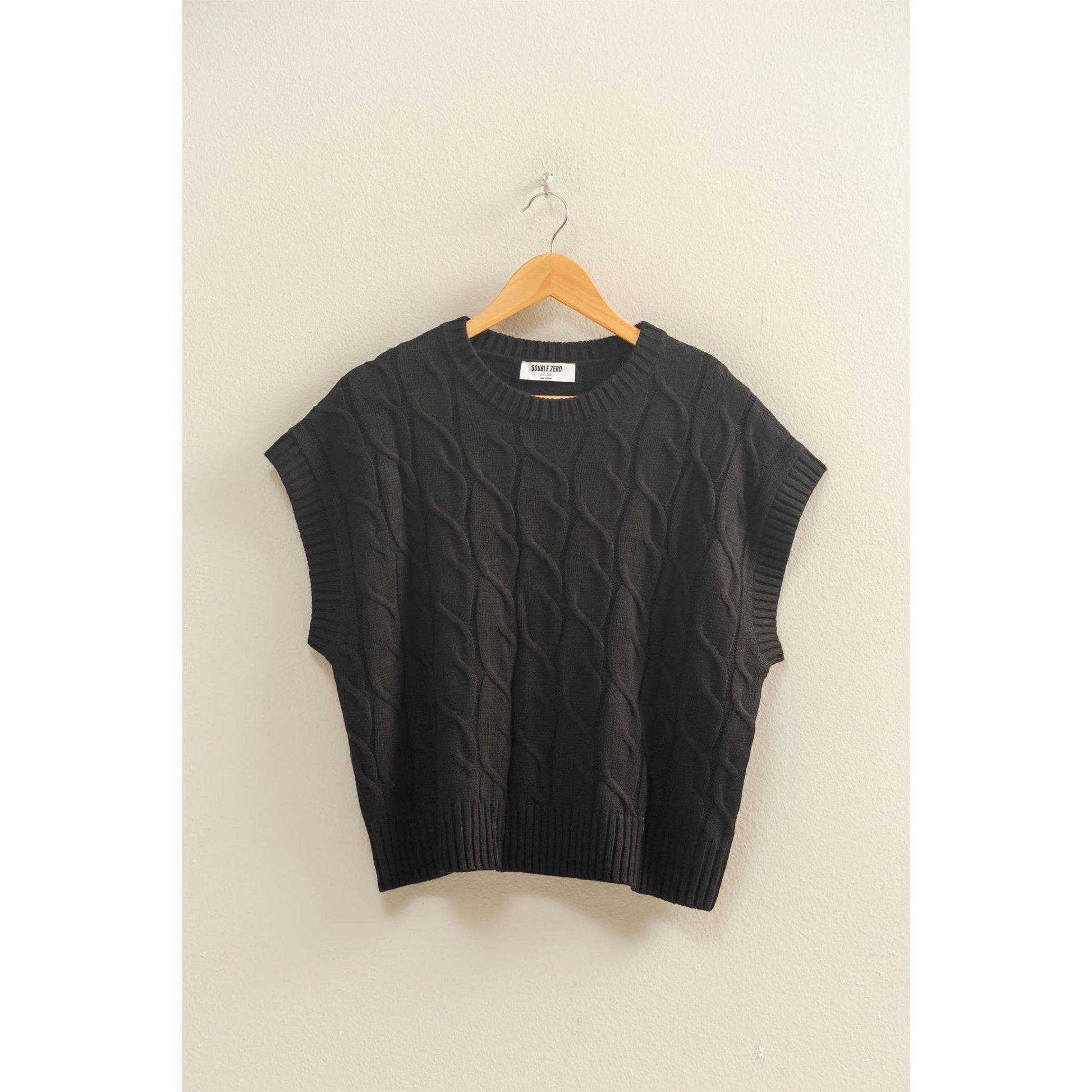 You'll be feeling cozy and looking sweet wearing this sweater vest. Accented with an eye-catching cable knit detailing, this oversized sweater comes with a crew neck and ribbed edges to create an effortlessly stylish look.