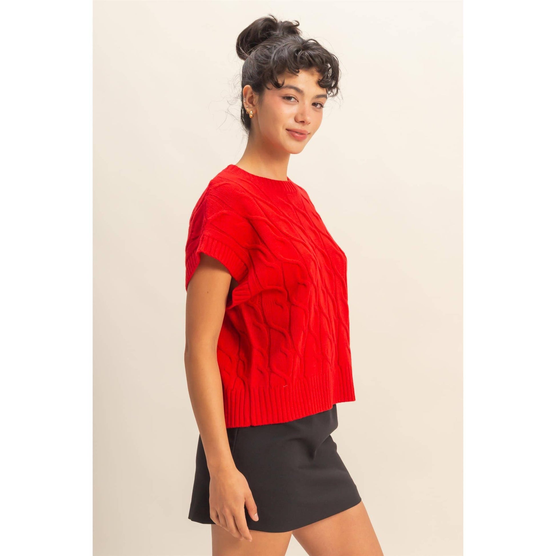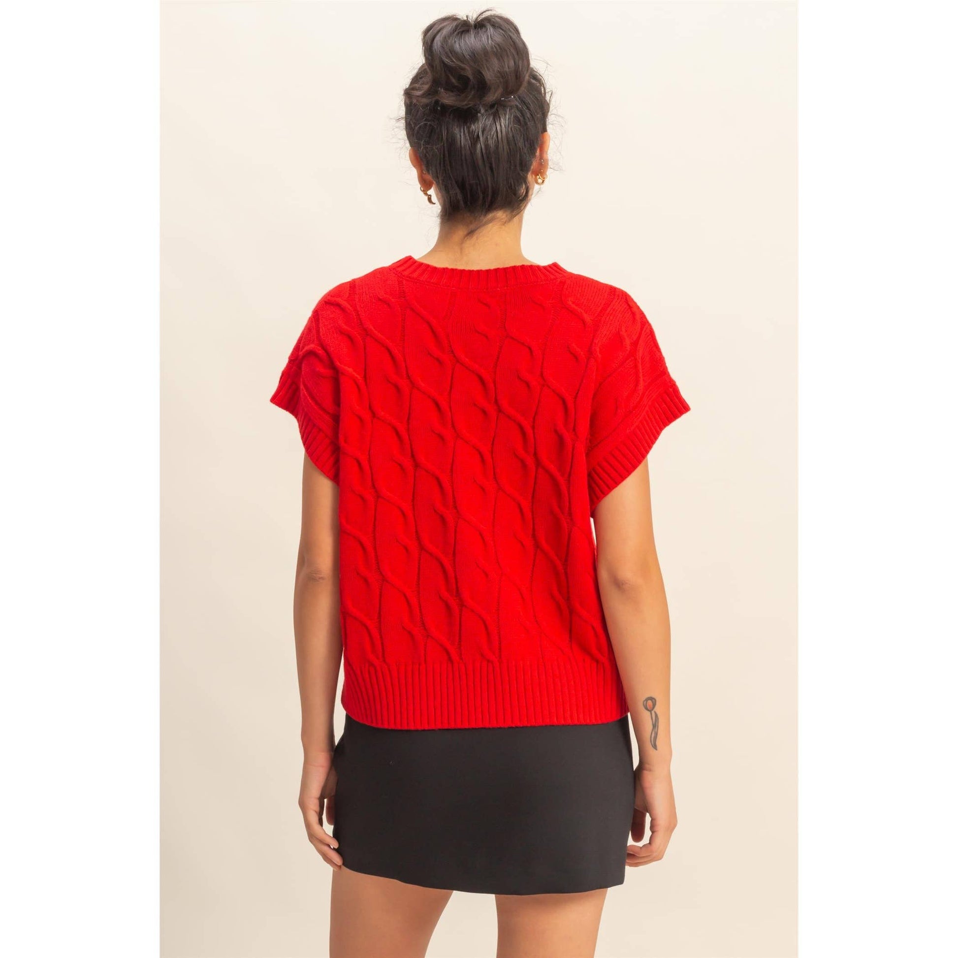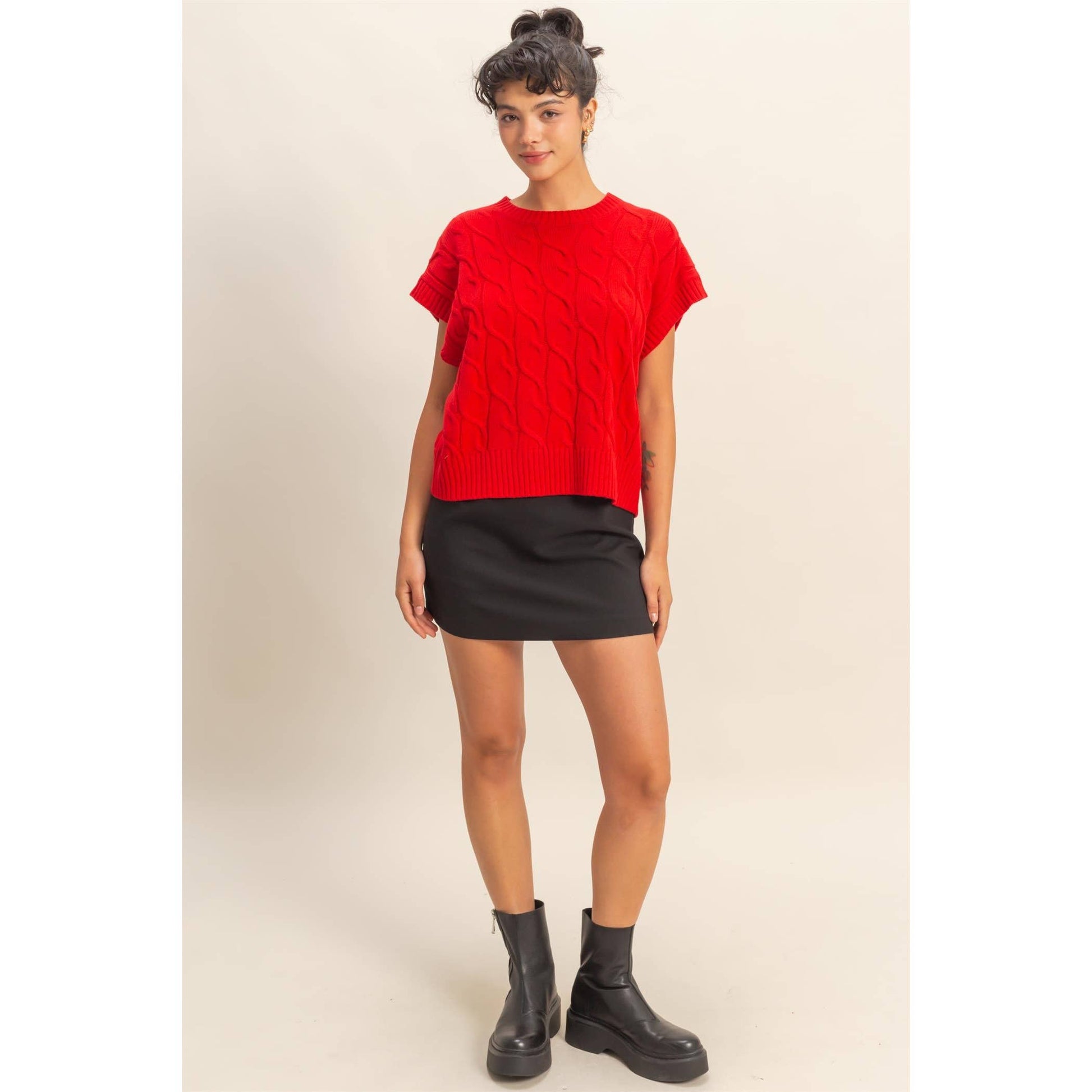You'll be feeling cozy and looking sweet wearing this sweater vest. Accented with an eye-catching cable knit detailing, this oversized sweater comes with a crew neck and ribbed edges to create an effortlessly stylish look.