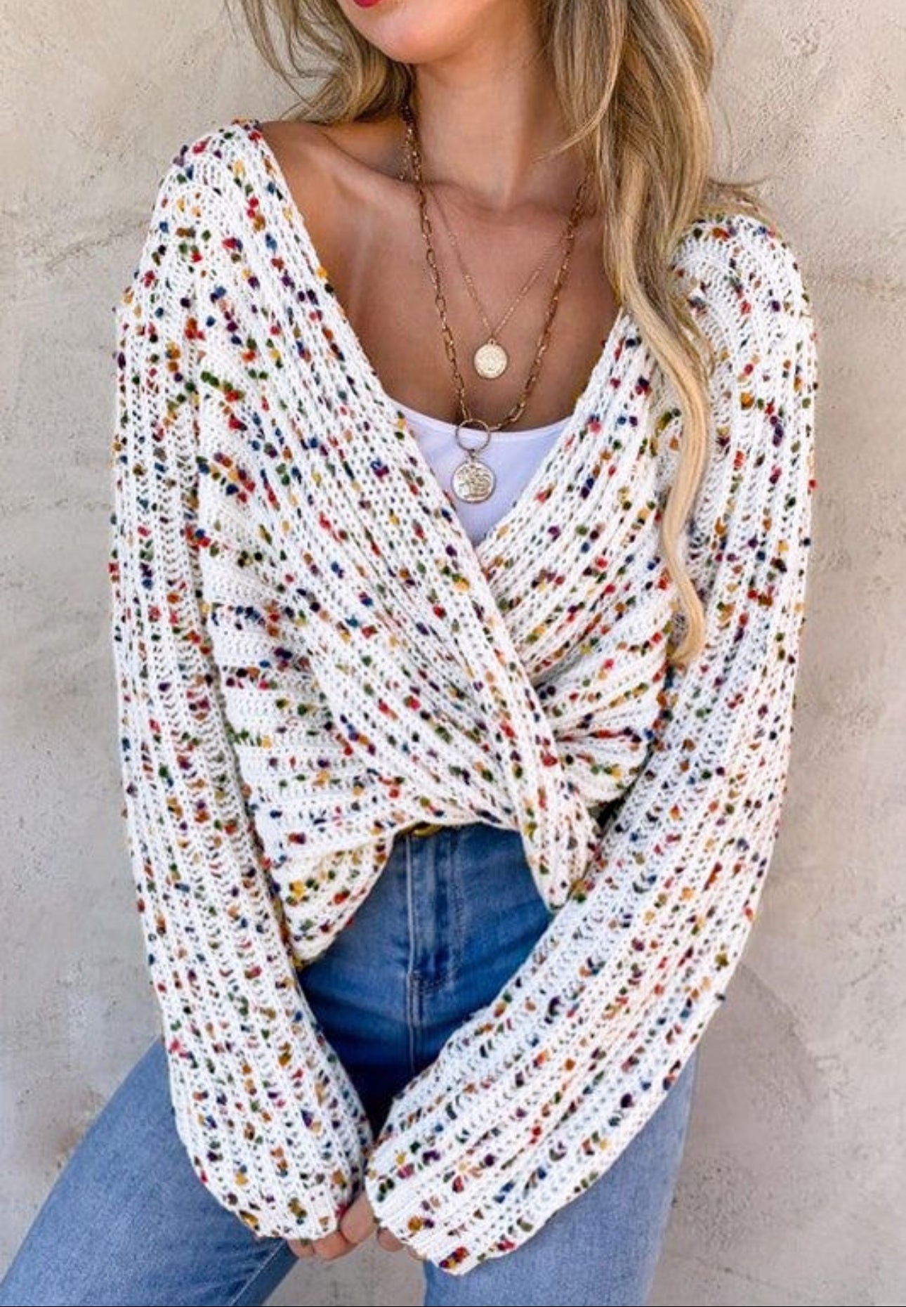 This sweater offers versatile styling with its reversible design, allowing you to switch between two looks in one garment.